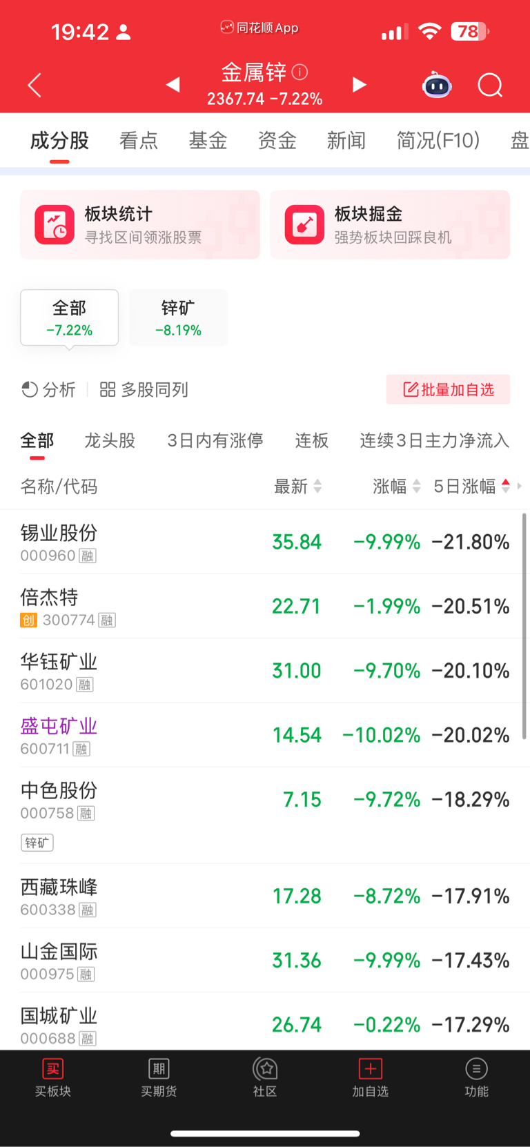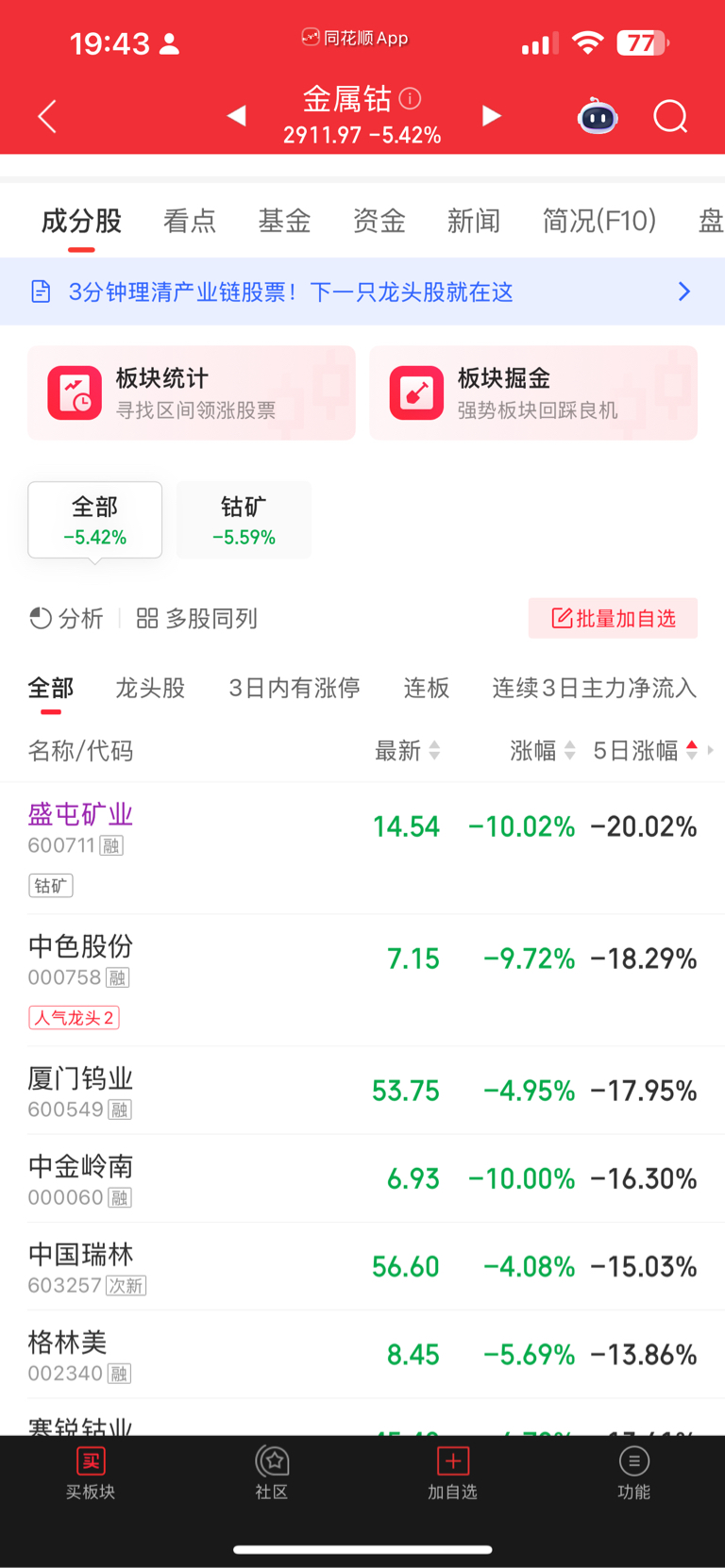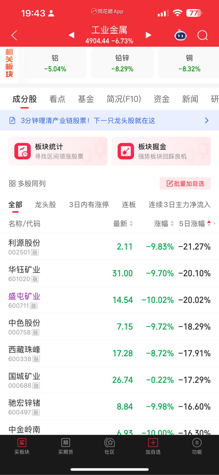 $盛屯矿业(SH600711)$ 每个板块几乎都是盛屯垫底 5日涨幅