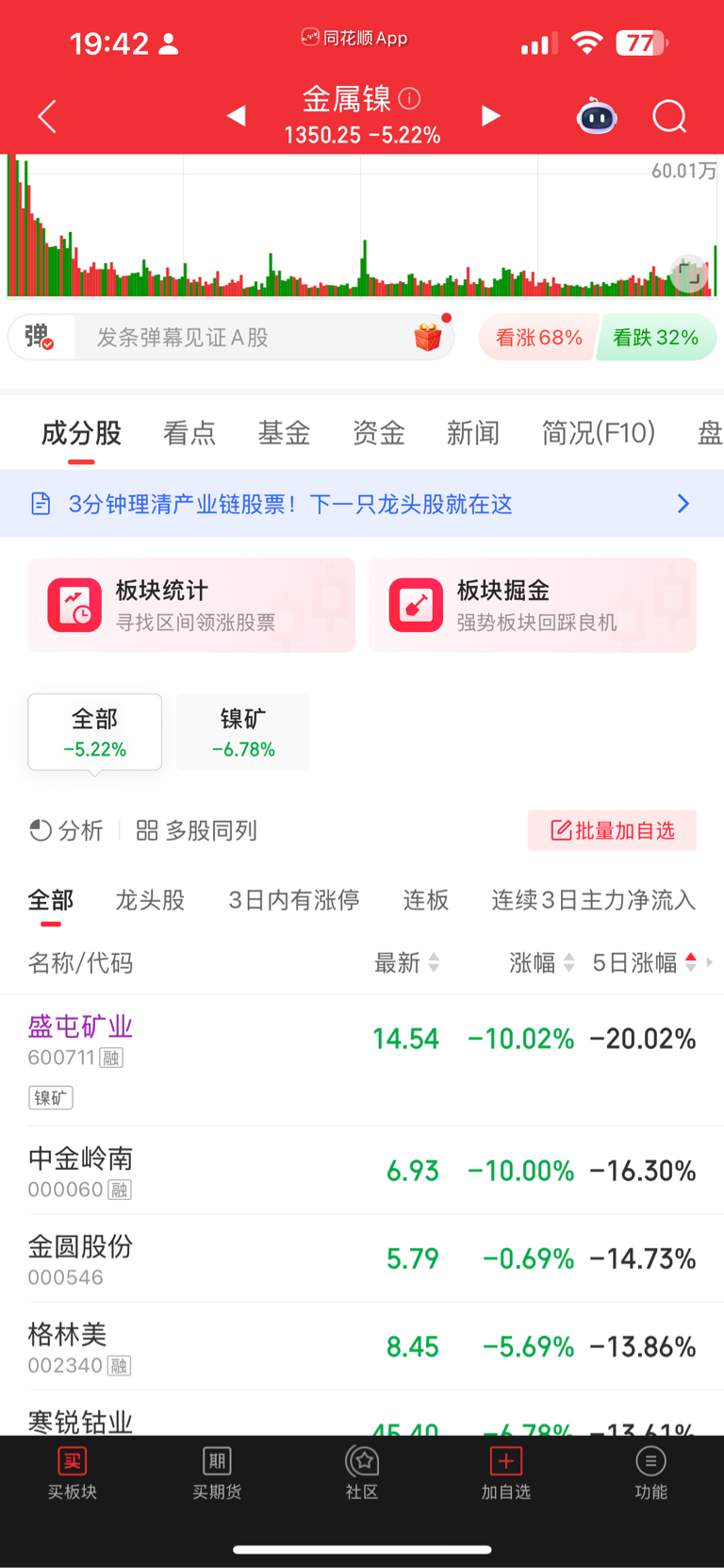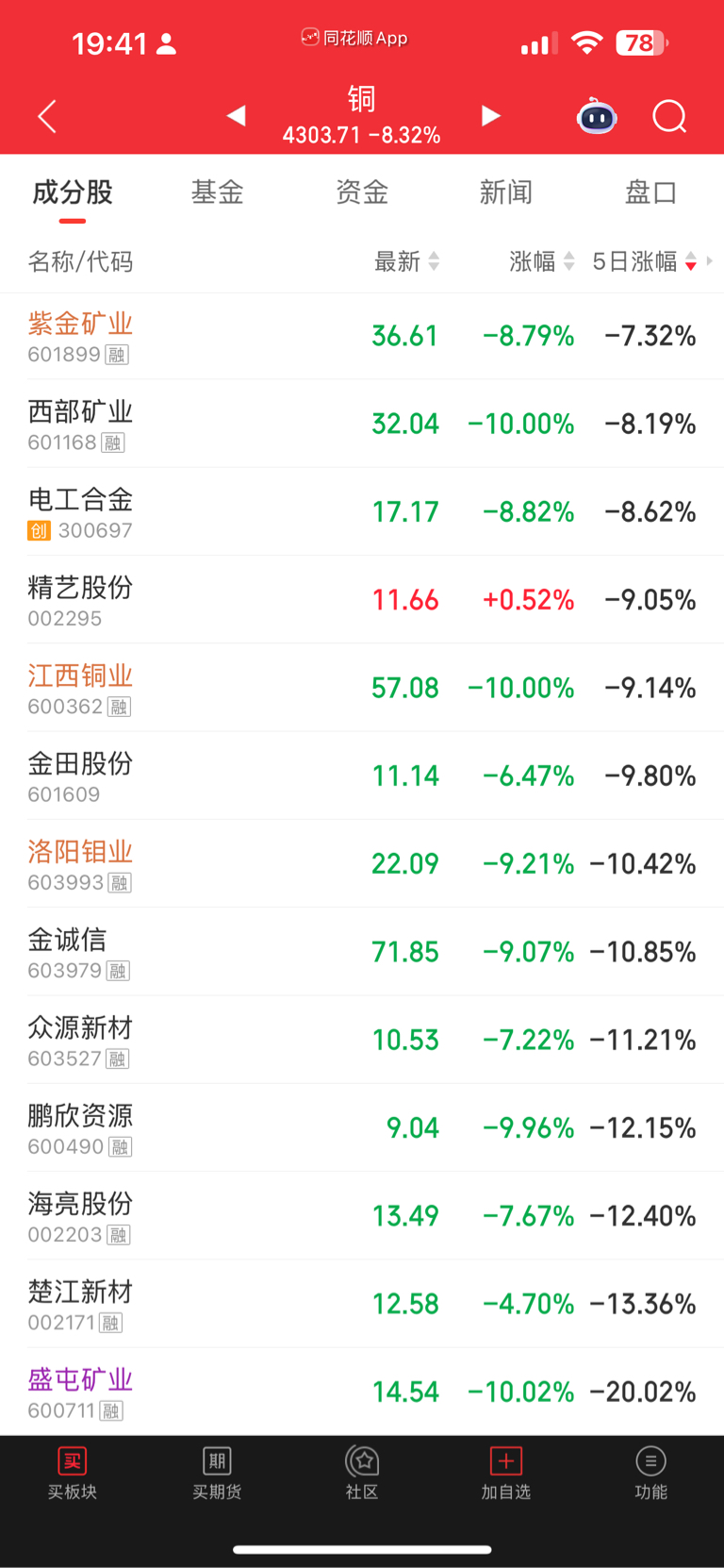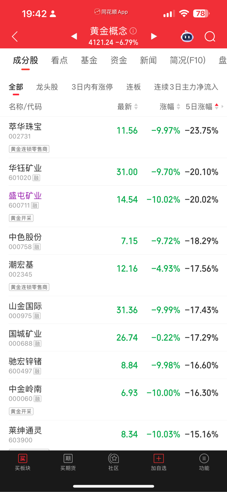 $盛屯矿业(SH600711)$ 每个板块几乎都是盛屯垫底 5日涨幅