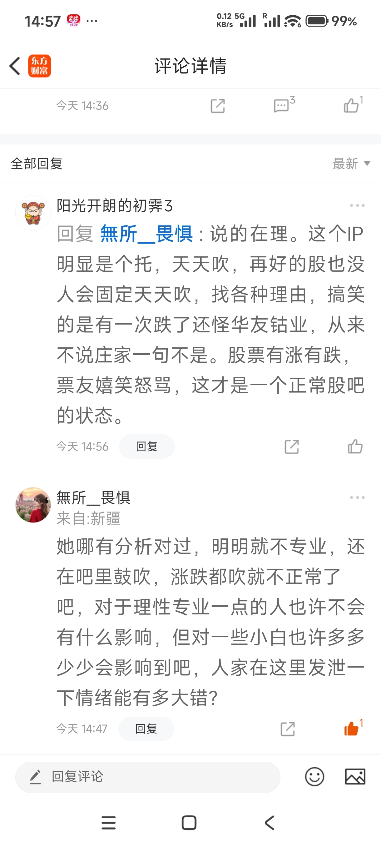 温馨提示: 1.根据《证券法》规定,禁止编造、传播虚假信息或者误导性信息,扰乱证券市场;2.用户在本社区发表的所有资料、言论等仅代表个人观点,与本网站立场无关,不对您构成任何投资建议。用户应基于自己的独立判断,自行决定证券投资并承担相应风险。《东方财富社区管理规定》