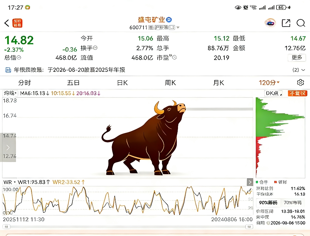 $盛屯矿业(SH600711)$ 连绿五天了,你周一该抬头了