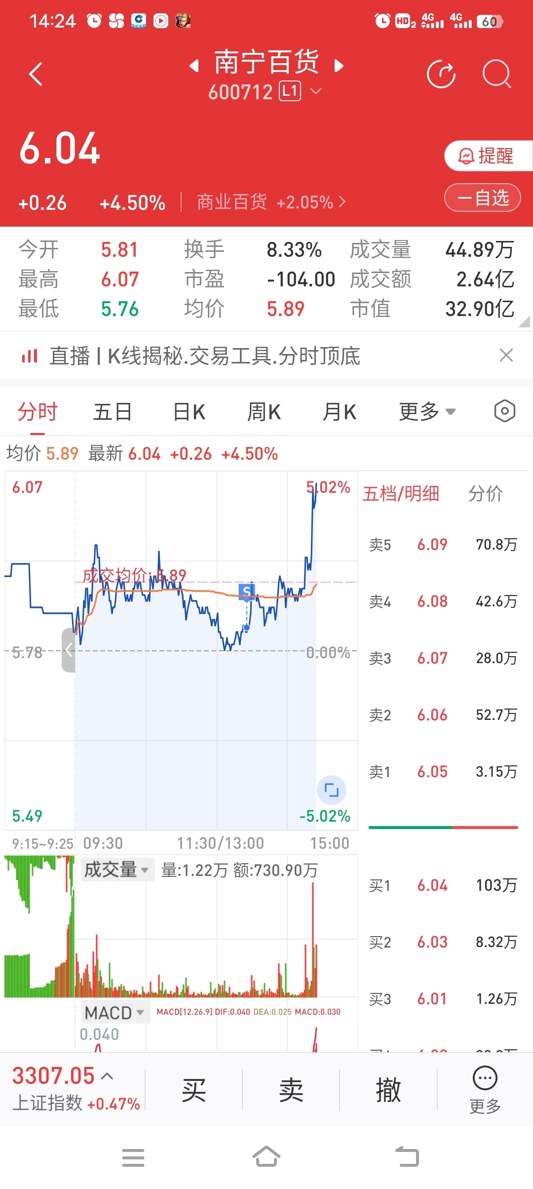$南宁百货(SH600712)$ 亏了三天一卖就涨。。。