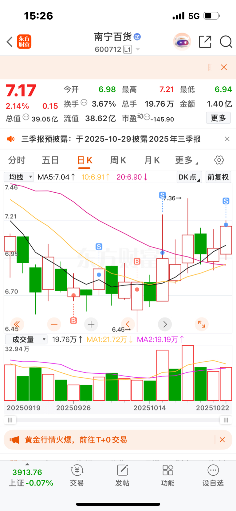 $南宁百货(SH600712)$ 叮 回踩15日线再加