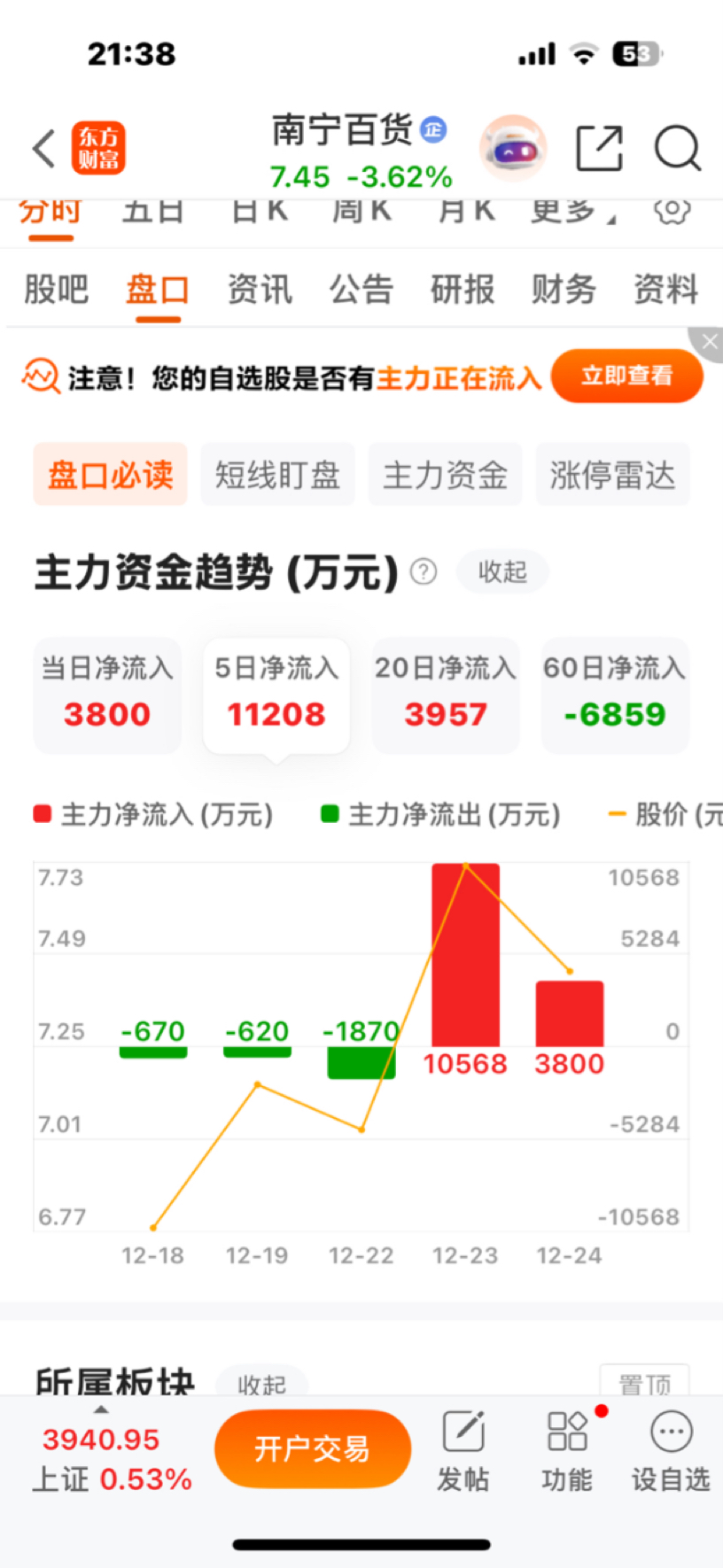 $南宁百货(SH600712)$ 这两天净流入1.4368亿 今天洗盘很干净!