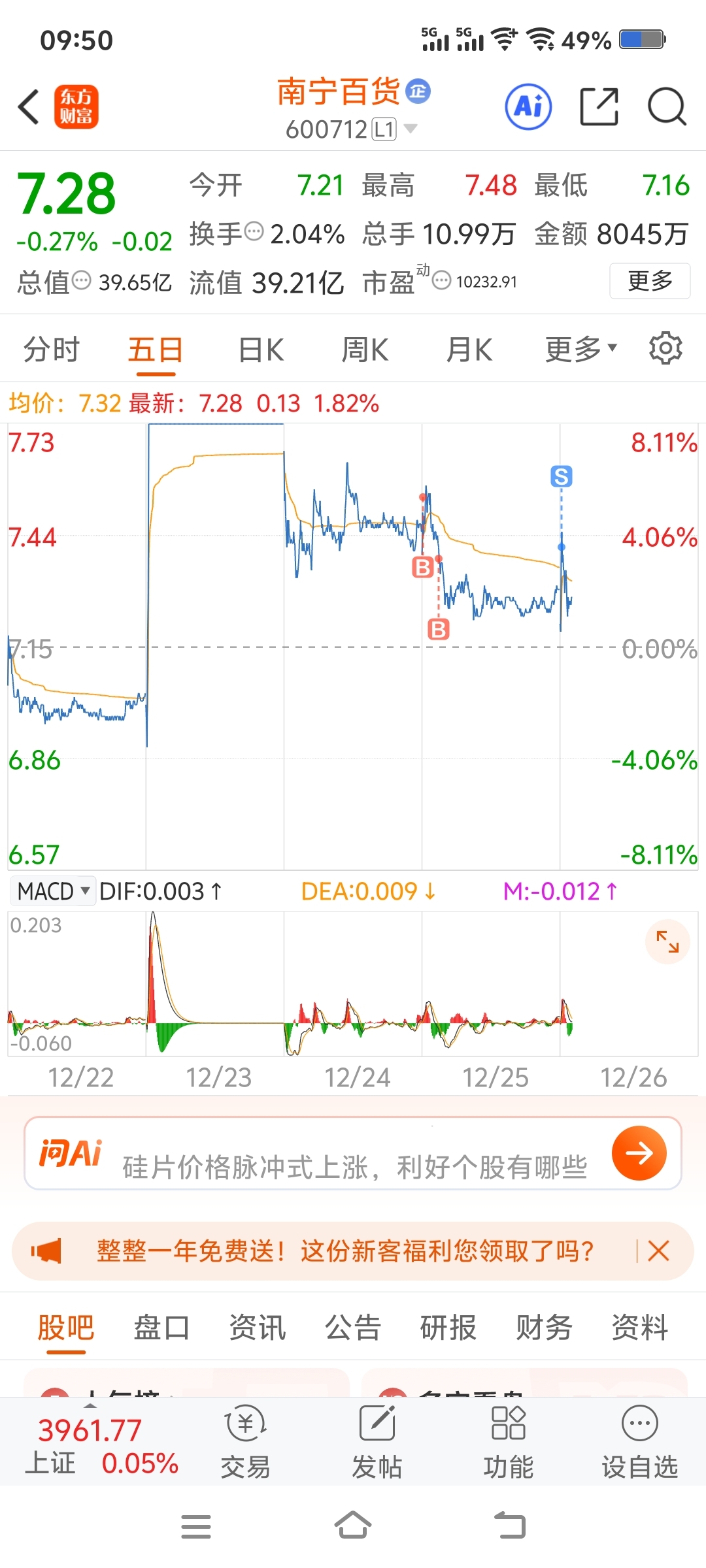 $南宁百货(SH600712)$ 昨天进的割的肉痛真特么垃圾