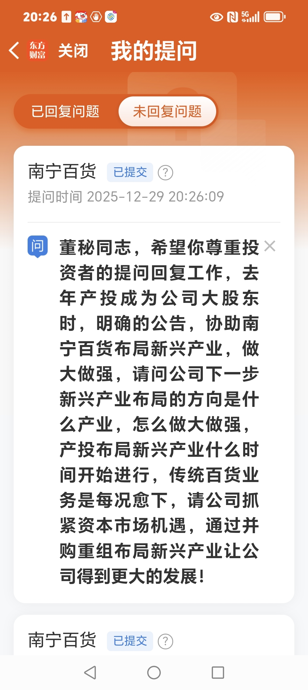 $南宁百货(SH600712)$ 今天继续提问!