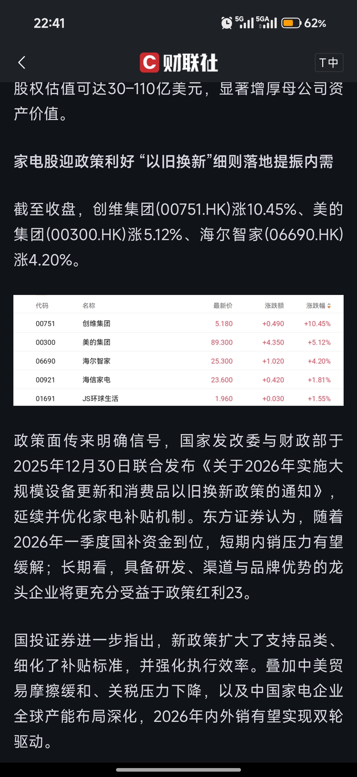 $南宁百货(SH600712)$ 假期消息面,港股爆发,并且伴随着家电以旧换新政策落地,相关家电股走强,南宁百货主营业务收入大部分来自于家电销售,可以看涨了