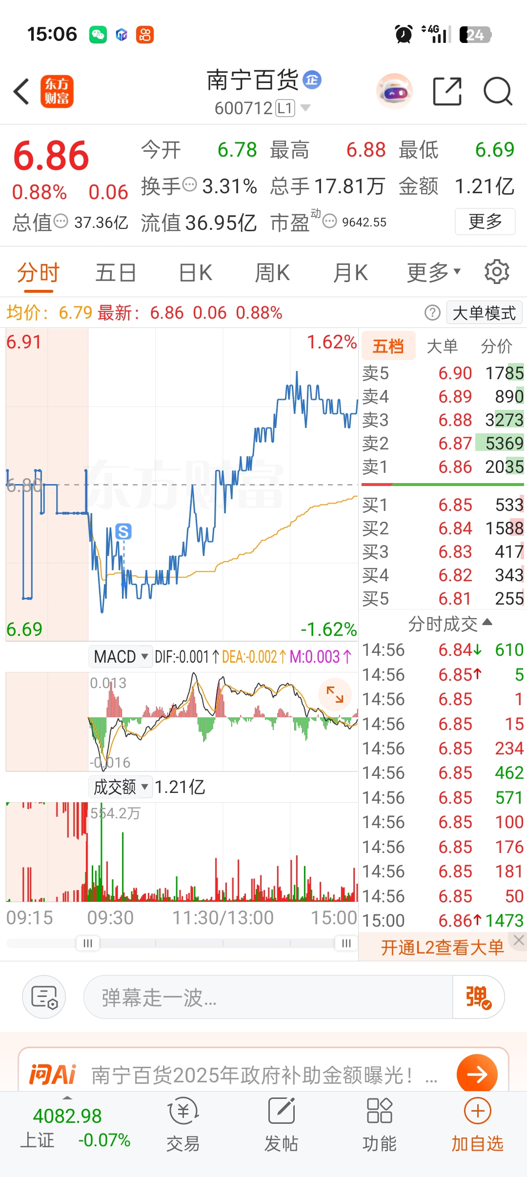 $南宁百货(SH600712)$
