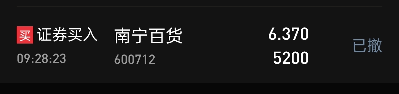 $南宁百货(SH600712)$ 绿庄今天怎么不绿呀,害我挂6.37,没买进,一条华子没了