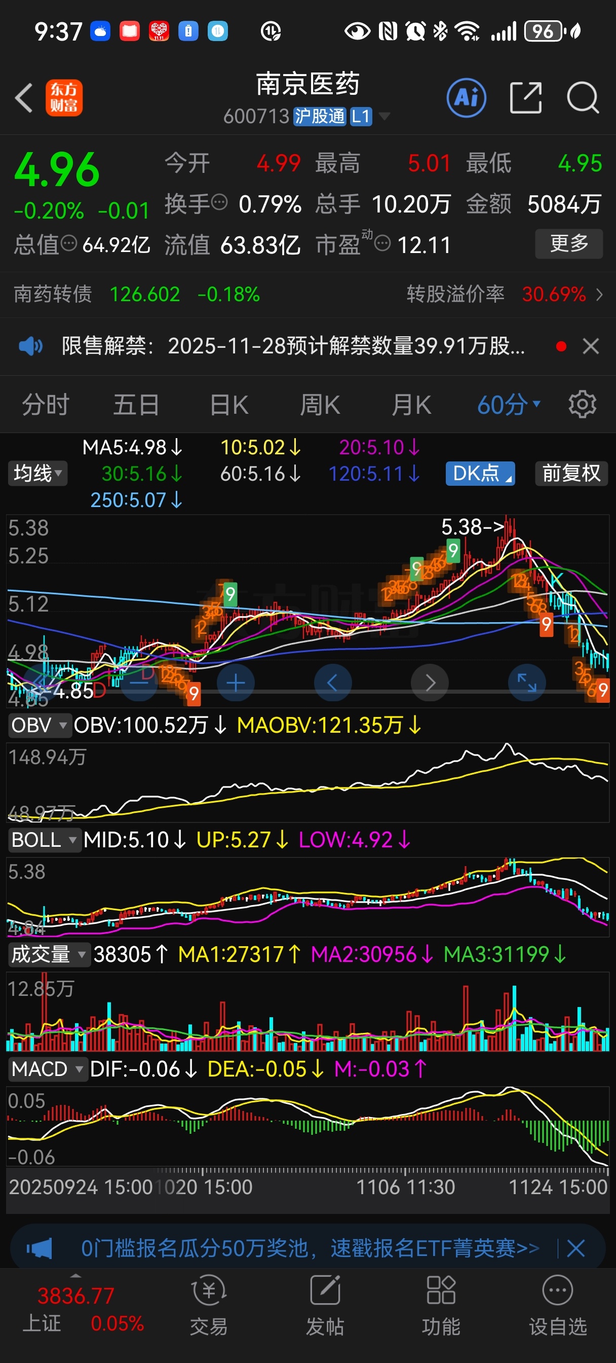 广药5.18接盘!日线120分60分30分见底!短线调整结束!!提前跌到年线,大