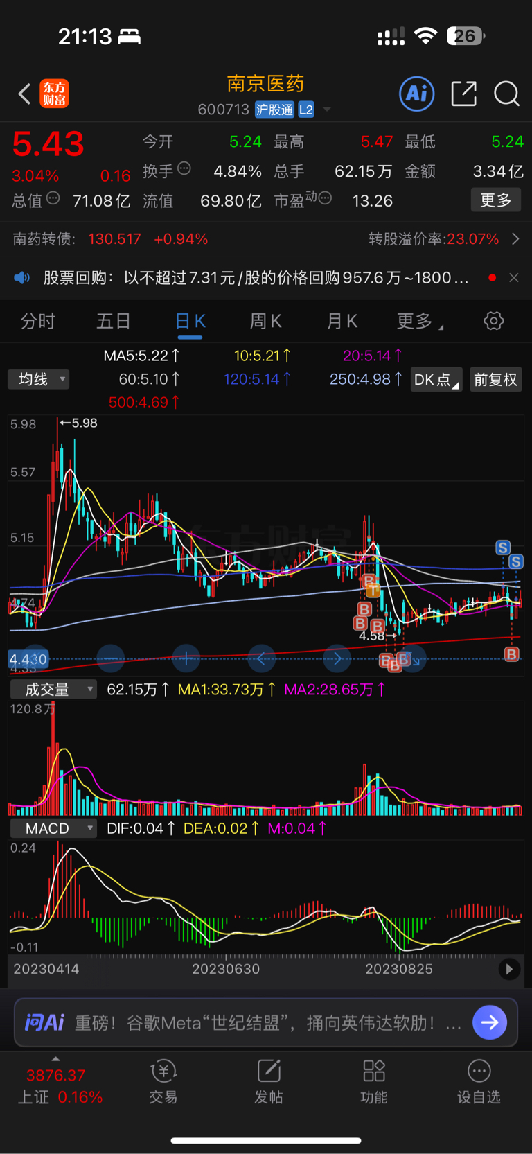 $南京医药(SH600713)$ 前期高点5.98明天如果涨停5.97,今天这个收盘价是故意的吗?挂了5.45没卖掉,谢谢了