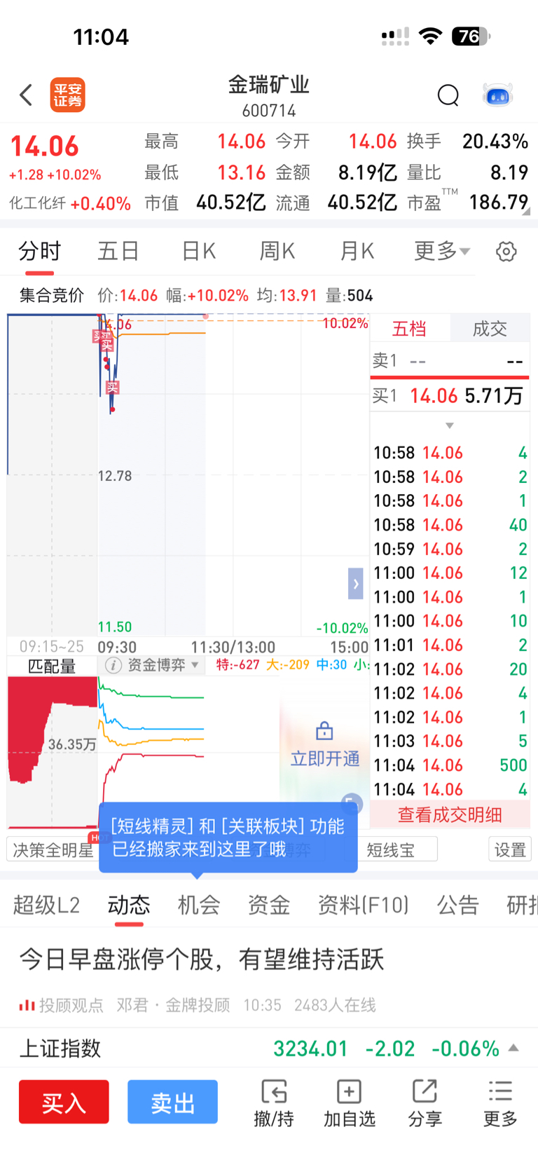 $金瑞矿业(SH600714)$ 早上重仓打板了金瑞矿业