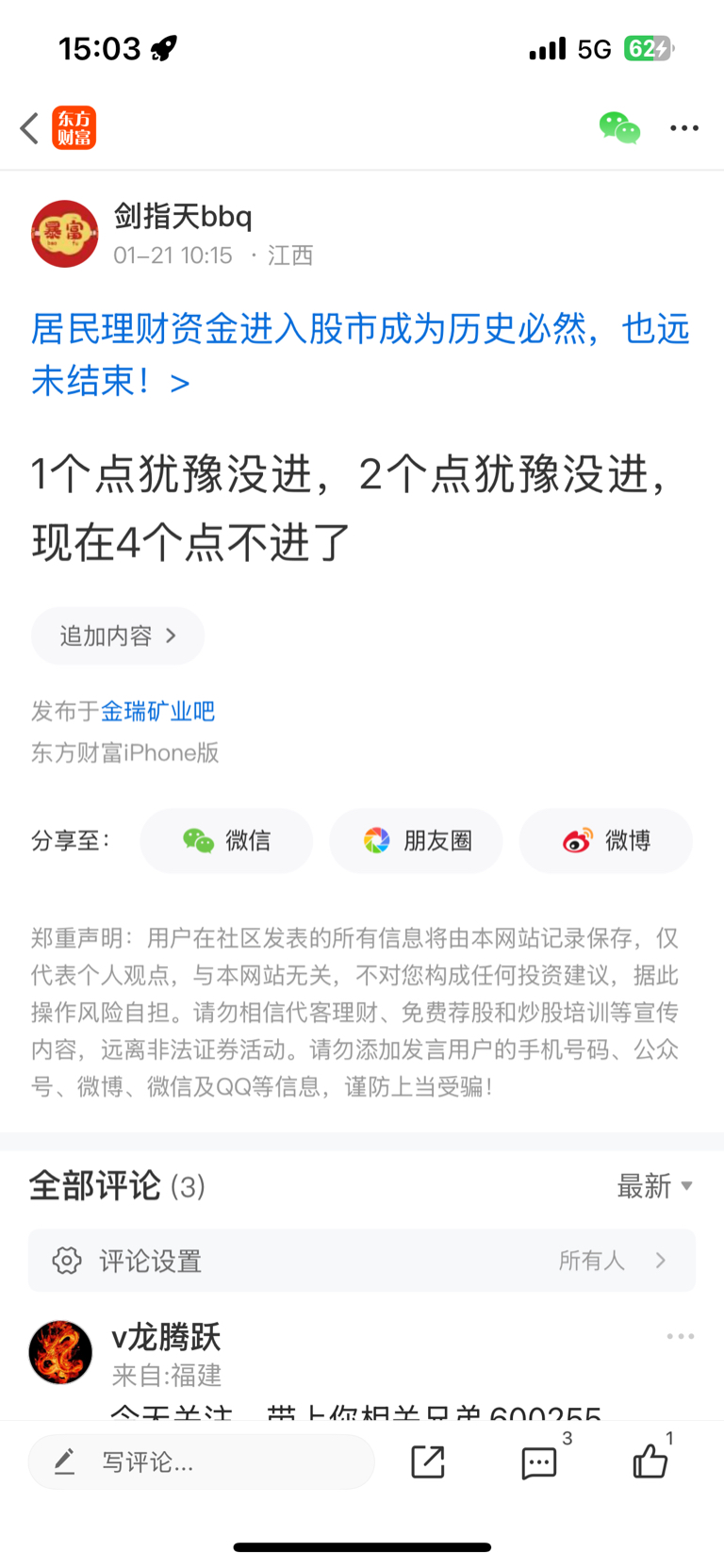 温馨提示: 1.根据《证券法》规定,禁止编造、传播虚假信息或者误导性信息,扰乱证券市场;2.用户在本社区发表的所有资料、言论等仅代表个人观点,与本网站立场无关,不对您构成任何投资建议。用户应基于自己的独立判断,自行决定证券投资并承担相应风险。《东方财富社区管理规定》