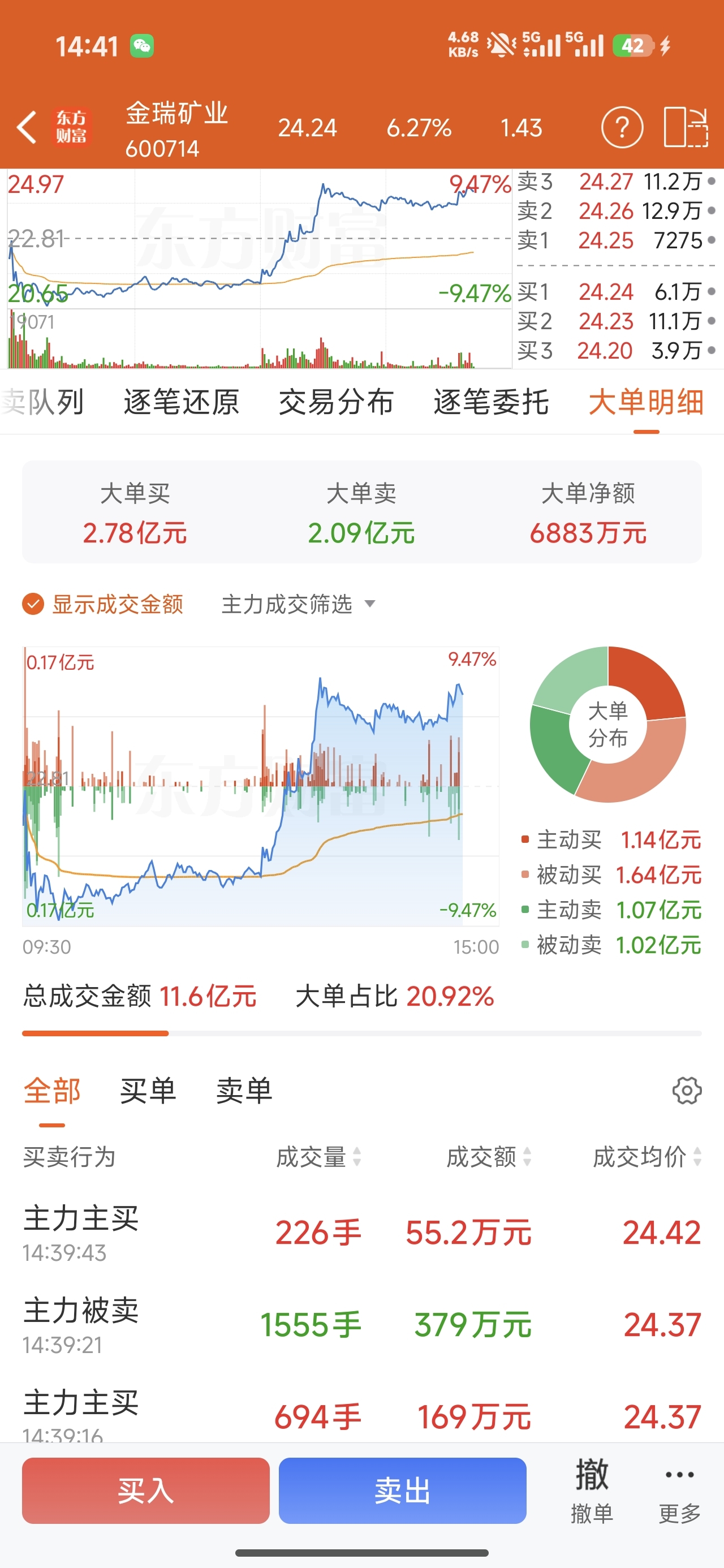 $金瑞矿业(SH600714)$ 今天看起来是资金在往里进