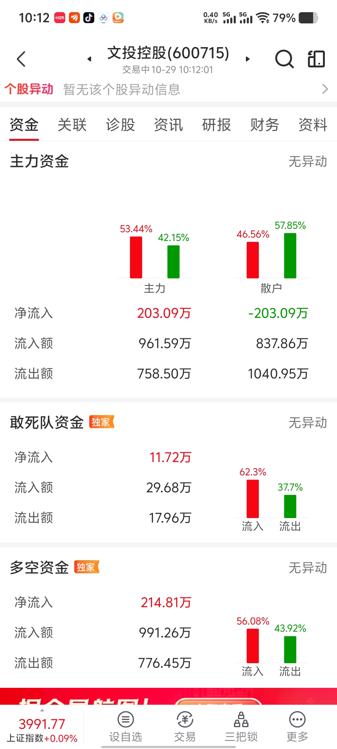 $文投控股(SH600715)$ 主力天天吸筹 涨停马上要涨停了 主力随时可以控盘了