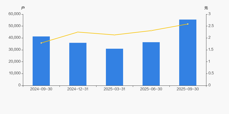 2024年9月30日至今,公司股东户数显著增长,区间涨幅为34.41%。2024年9月30日至2025年9月30日区间股价上涨44.60%。