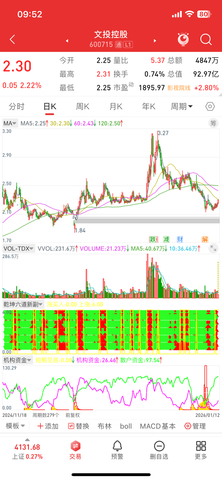 $文投控股(SH600715)$ 下面的大柱子表示机构资金的买入。拿住