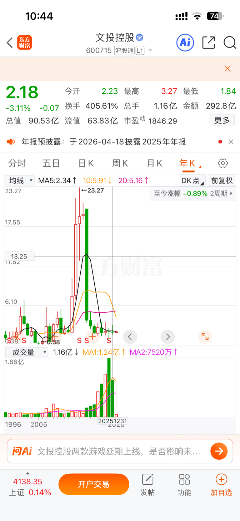 $文投控股(SH600715)$ 好jian
