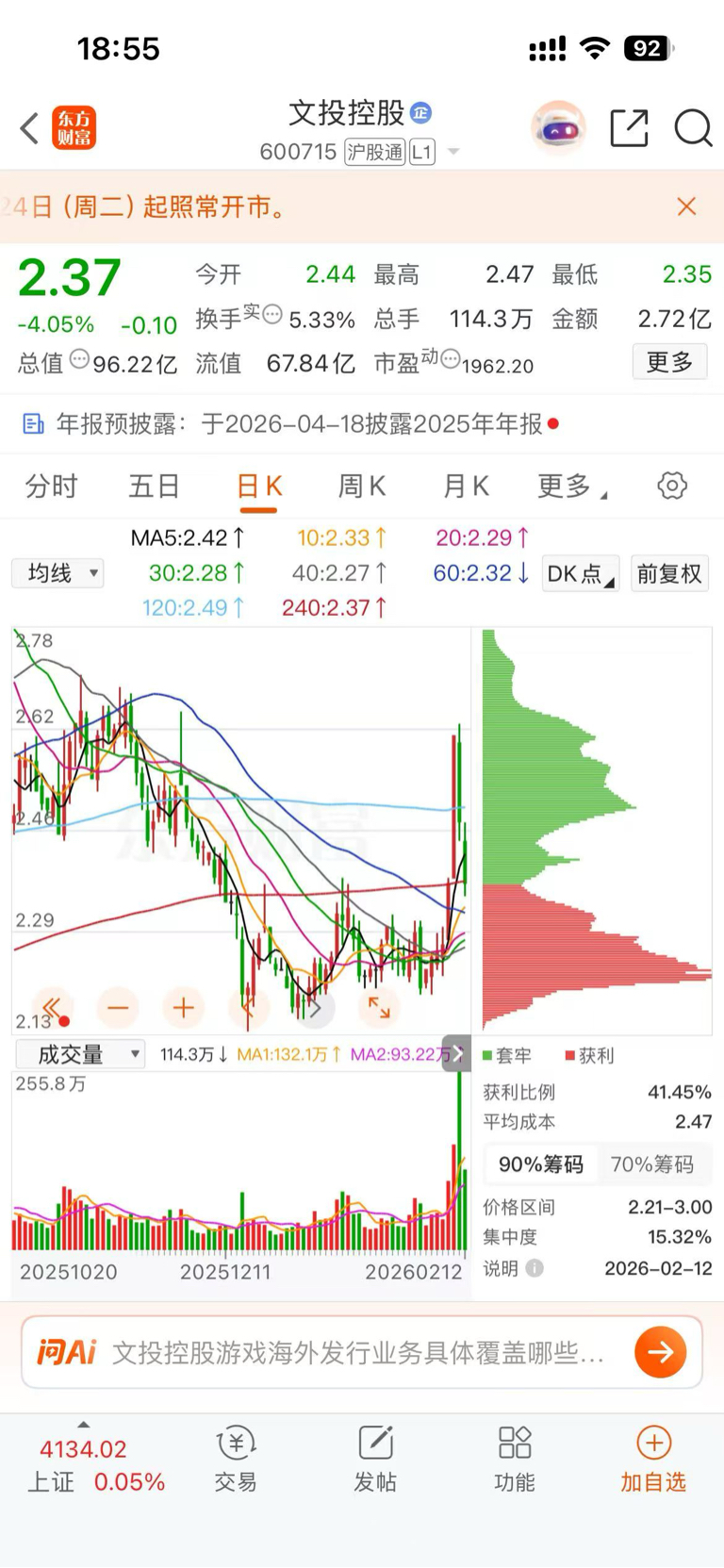 $文投控股(SH600715)$ 底部筹码没动,大概率是主力洗盘,加自选了,明天上车