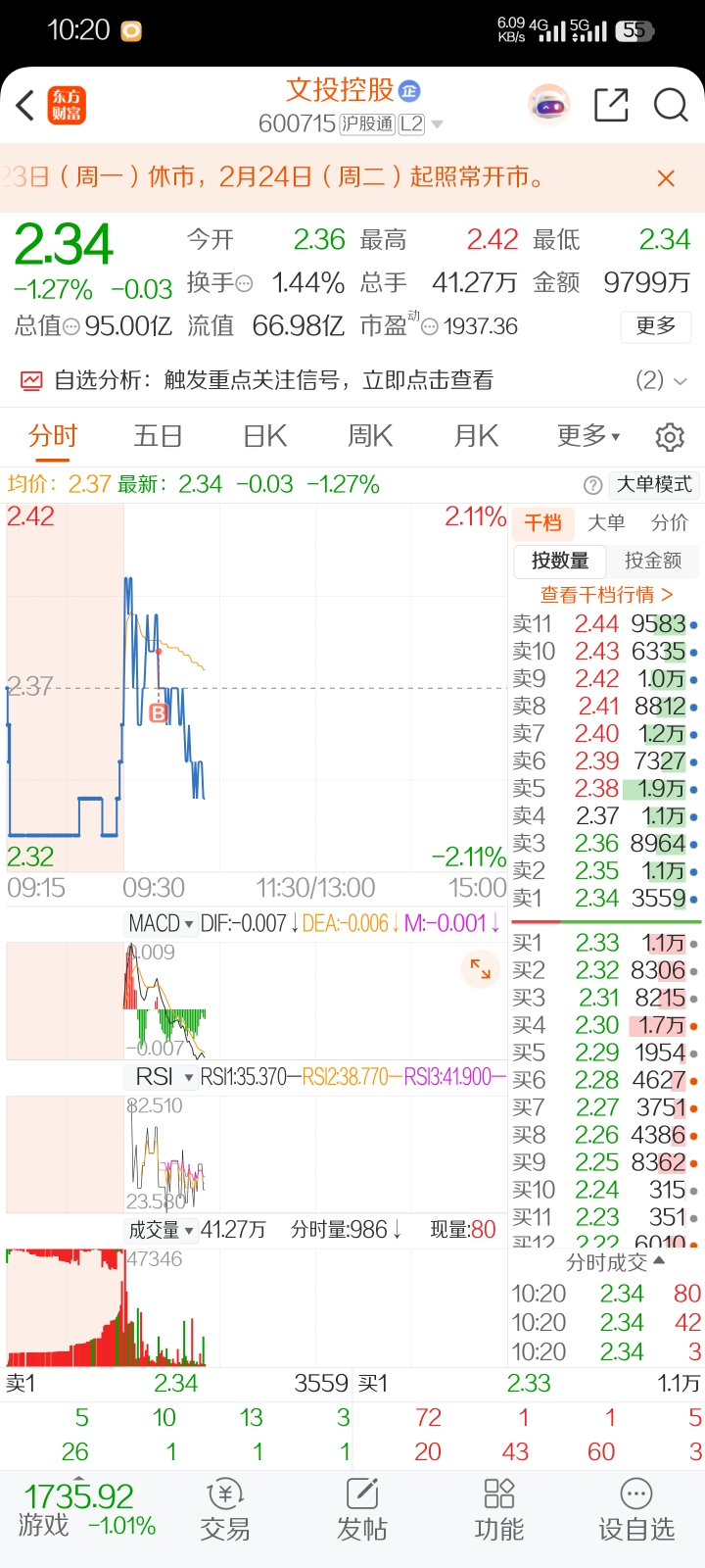 $文投控股(SH600715)$ 拉涨停的大哥赚钱了,今天买在了次高点,等节后的涨停吧
