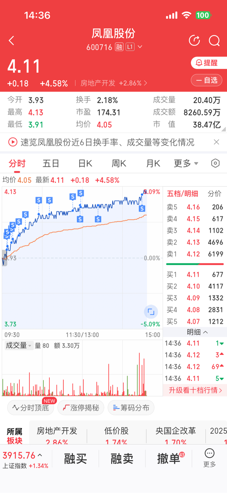 $凤凰股份(SH600716)$ 前天脑袋一热跑光了。哎