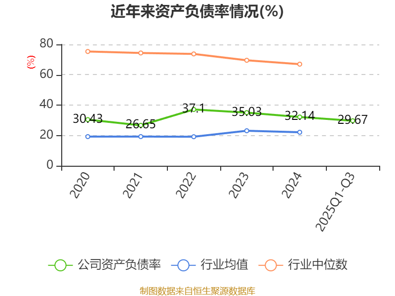 2025年前三季度,公司流动比率为3.09,速动比率为0.64。