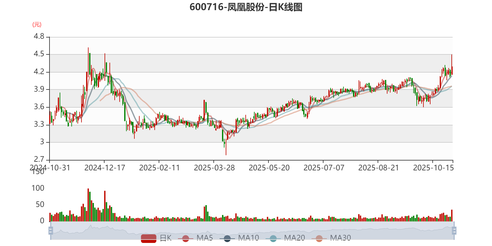 以10月30日收盘价计算,凤凰股份目前市盈率(TTM)约为-28.44倍,市净率(LF)约0.8倍,市销率(TTM)约3.55倍。