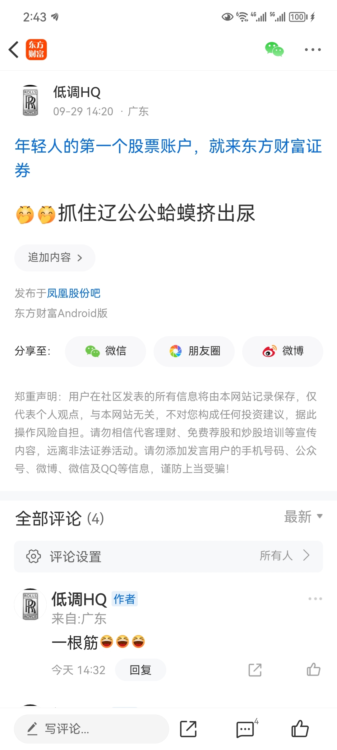 温馨提示: 1.根据《证券法》规定,禁止编造、传播虚假信息或者误导性信息,扰乱证券市场;2.用户在本社区发表的所有资料、言论等仅代表个人观点,与本网站立场无关,不对您构成任何投资建议。用户应基于自己的独立判断,自行决定证券投资并承担相应风险。《东方财富社区管理规定》
