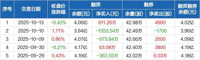 天津港:融资净买入611.26万元,融资余额4亿元(10-13)