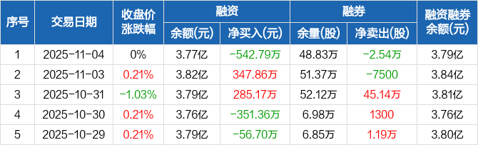 天津港:融资净偿还542.79万元,融资余额3.77亿元(11-04)
