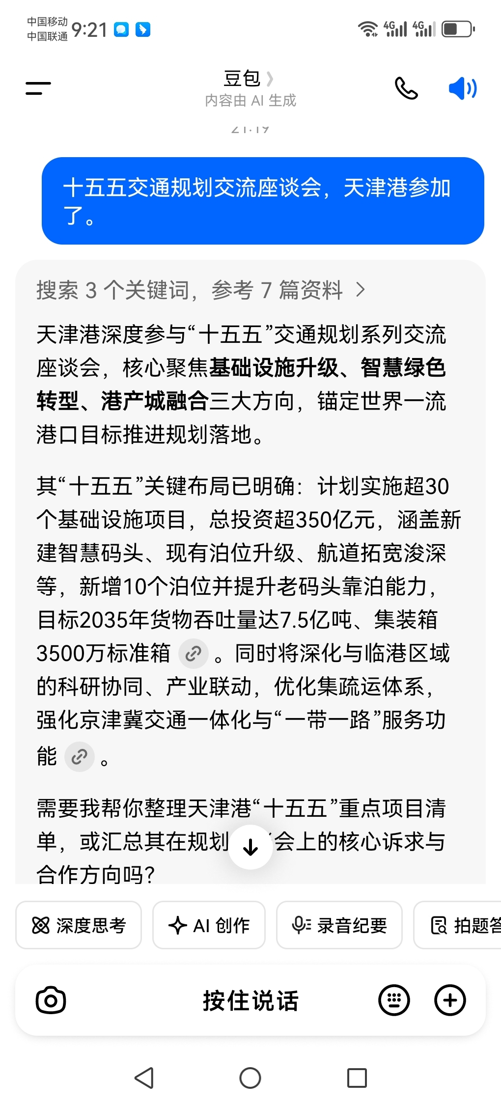 啊康,天津港深度参加了十五五未来交通规划座谈会,我感觉这个很有代表性,新质生产力