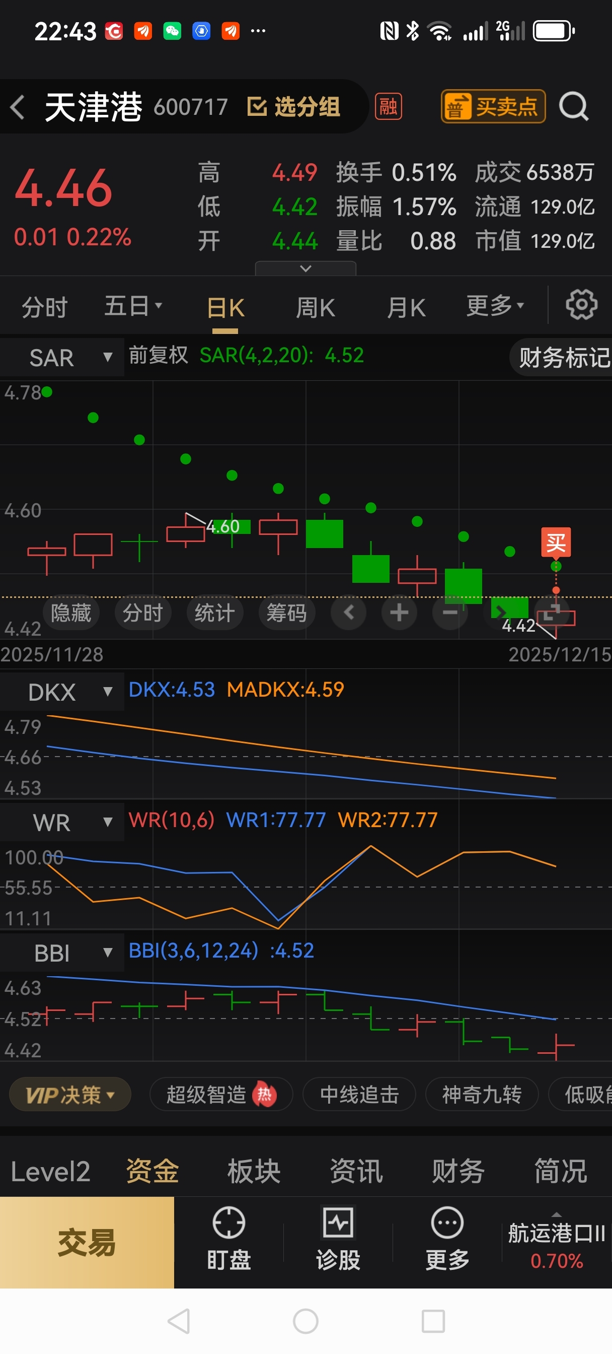 天津港,12月15号,已建仓4.43,已清仓唐山港,3.92。