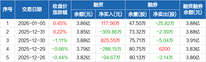 天津港:融资净买入117.56万元,融资余额3.86亿元(01-05)