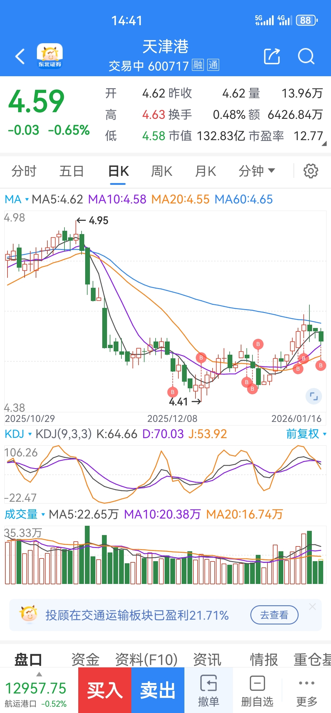 $天津港(SH600717)$ 太闷了,刚刚4.59又买了点天津港