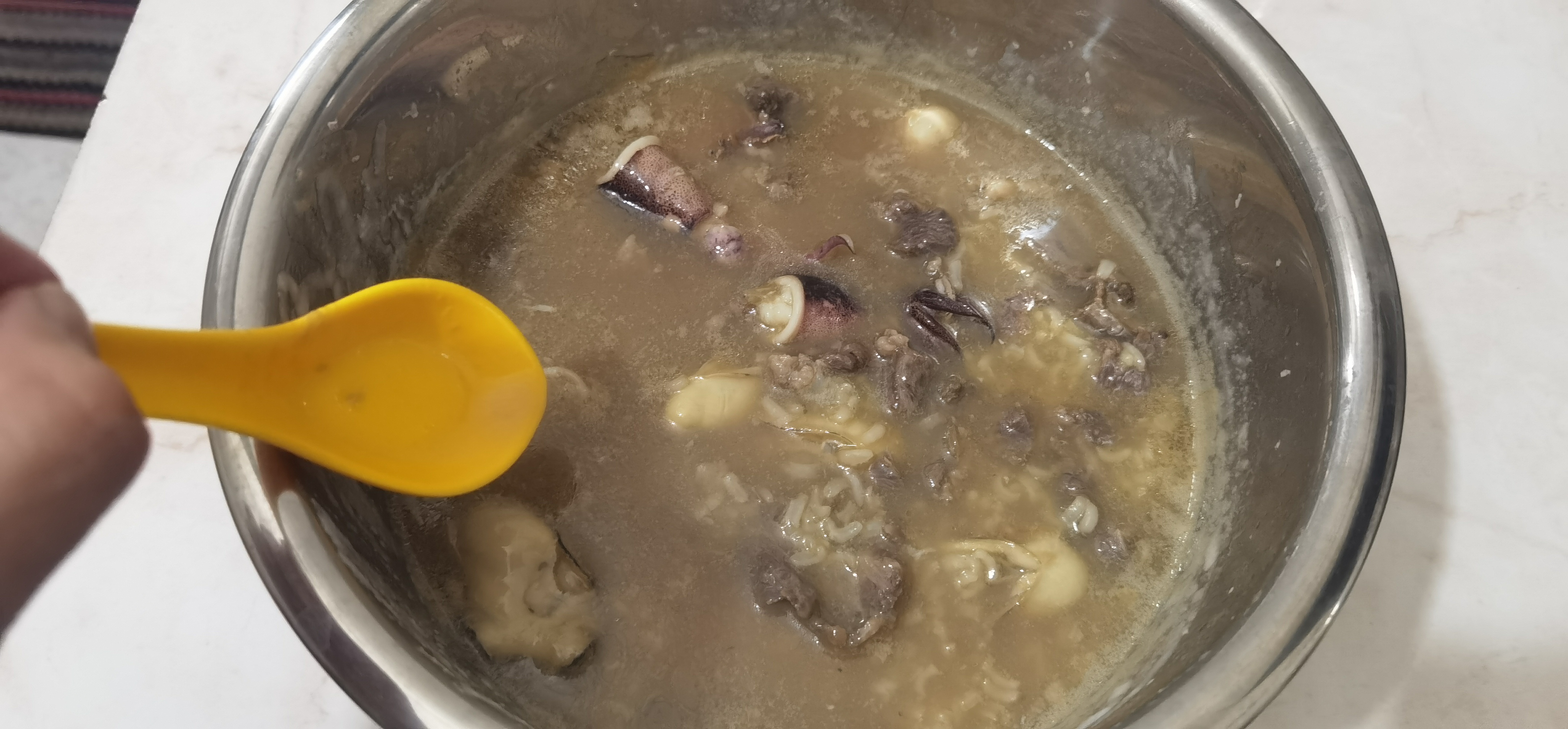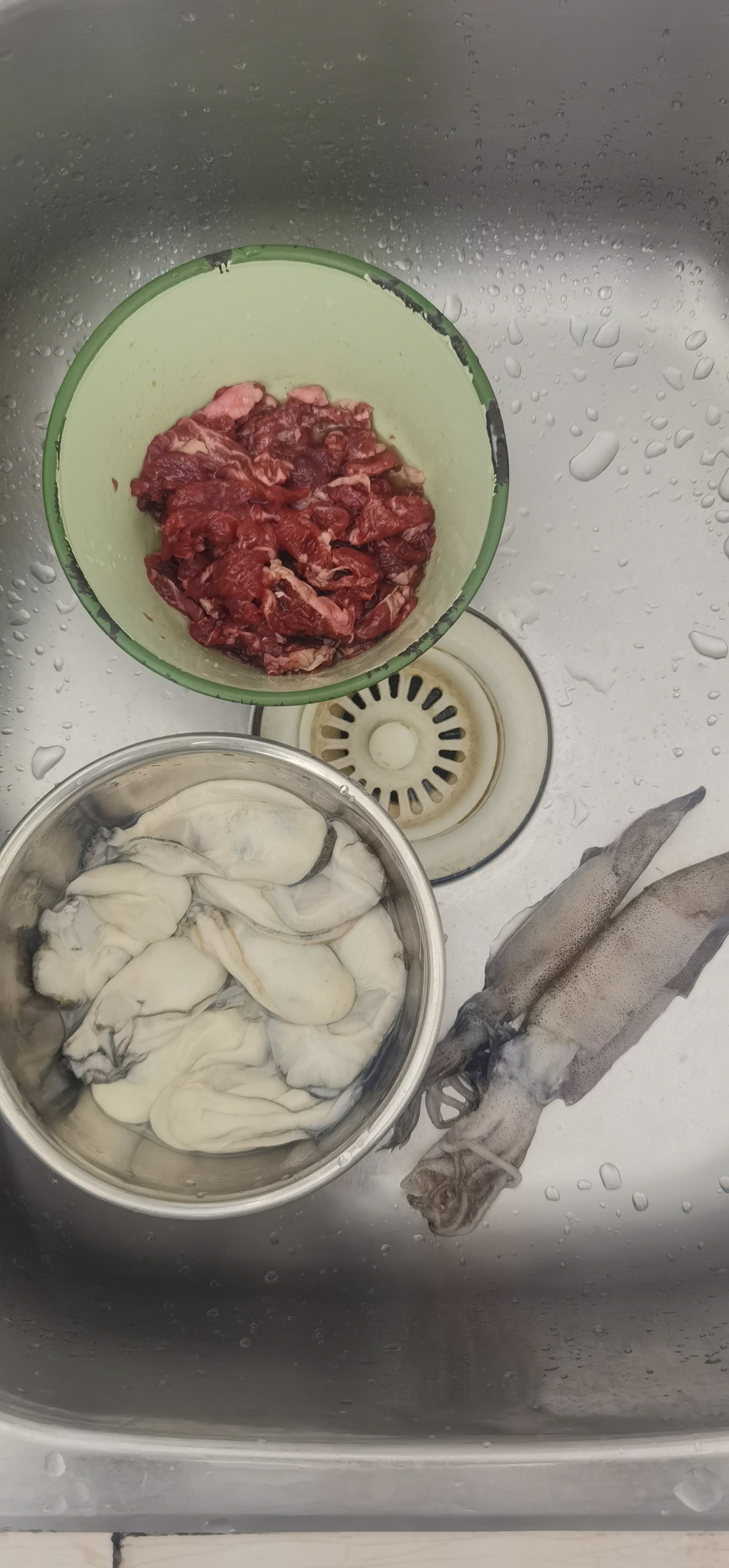 今天天津港涨这么多吃好点,生蚝,鱿鱼,牛肉粥。赞啊,鲜。你们外省人估计不知道什么叫鲜味。这些料外面吃最少80块起步,自己买40内搞定。省40继续买天津港