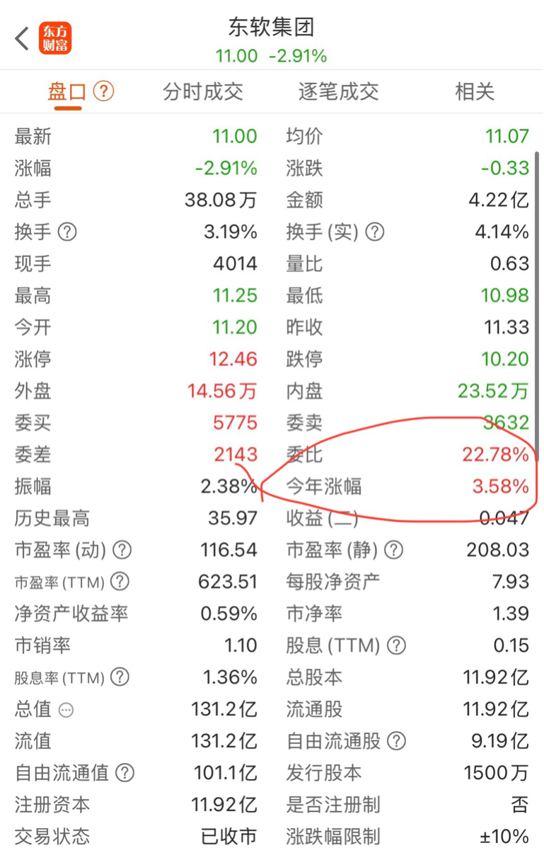 东软集团截止今日今年涨幅3.58对照大盘与其他个股,自行判断大股东与管理层该不该