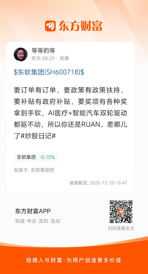 要订单有订单,要政策有政策扶持,要补贴有政府补贴,要奖项有各种奖拿到手软,AI医疗+智能汽车双轮驱动都驱不动,所以你还是RUAN,差哪儿了#炒股日记#