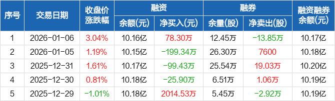 东软集团:融资净买入78.3万元,融资余额10.16亿元(01-06)