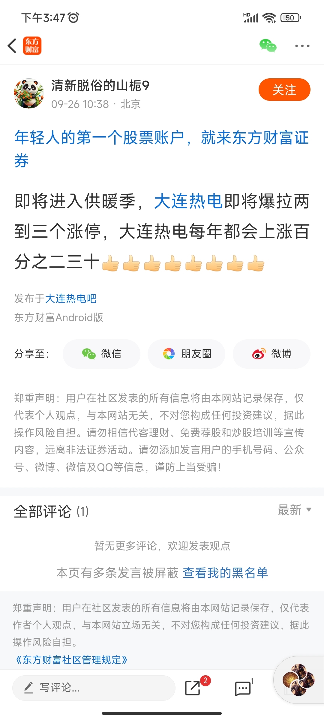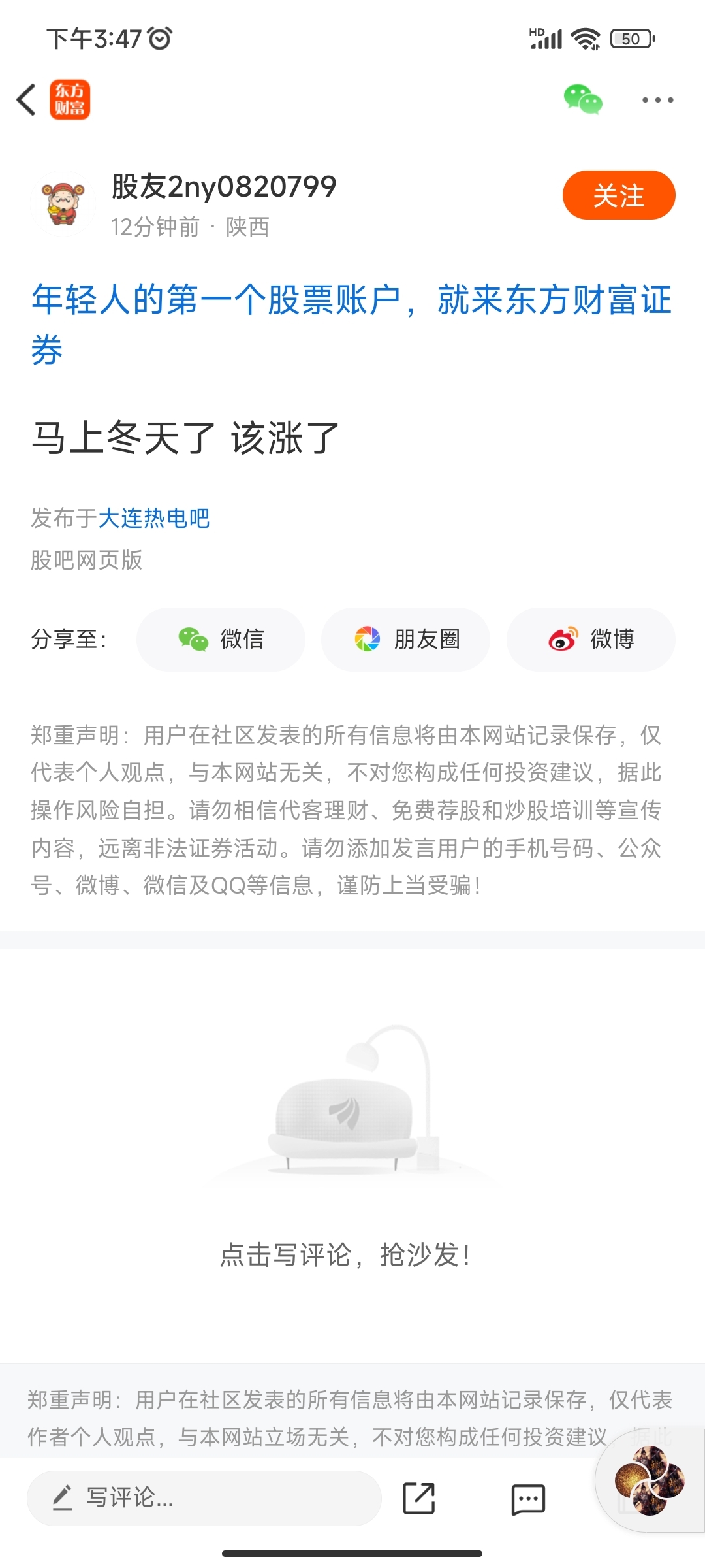 温馨提示: 1.根据《证券法》规定,禁止编造、传播虚假信息或者误导性信息,扰乱证券市场;2.用户在本社区发表的所有资料、言论等仅代表个人观点,与本网站立场无关,不对您构成任何投资建议。用户应基于自己的独立判断,自行决定证券投资并承担相应风险。《东方财富社区管理规定》