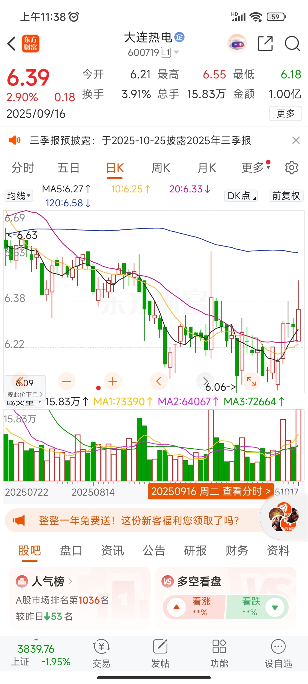 $大连热电(SH600719)$ 这次走势跟9月16日何其相似,也是放量滞涨收长上影线,下周估计又要套一批韭菜接盘了