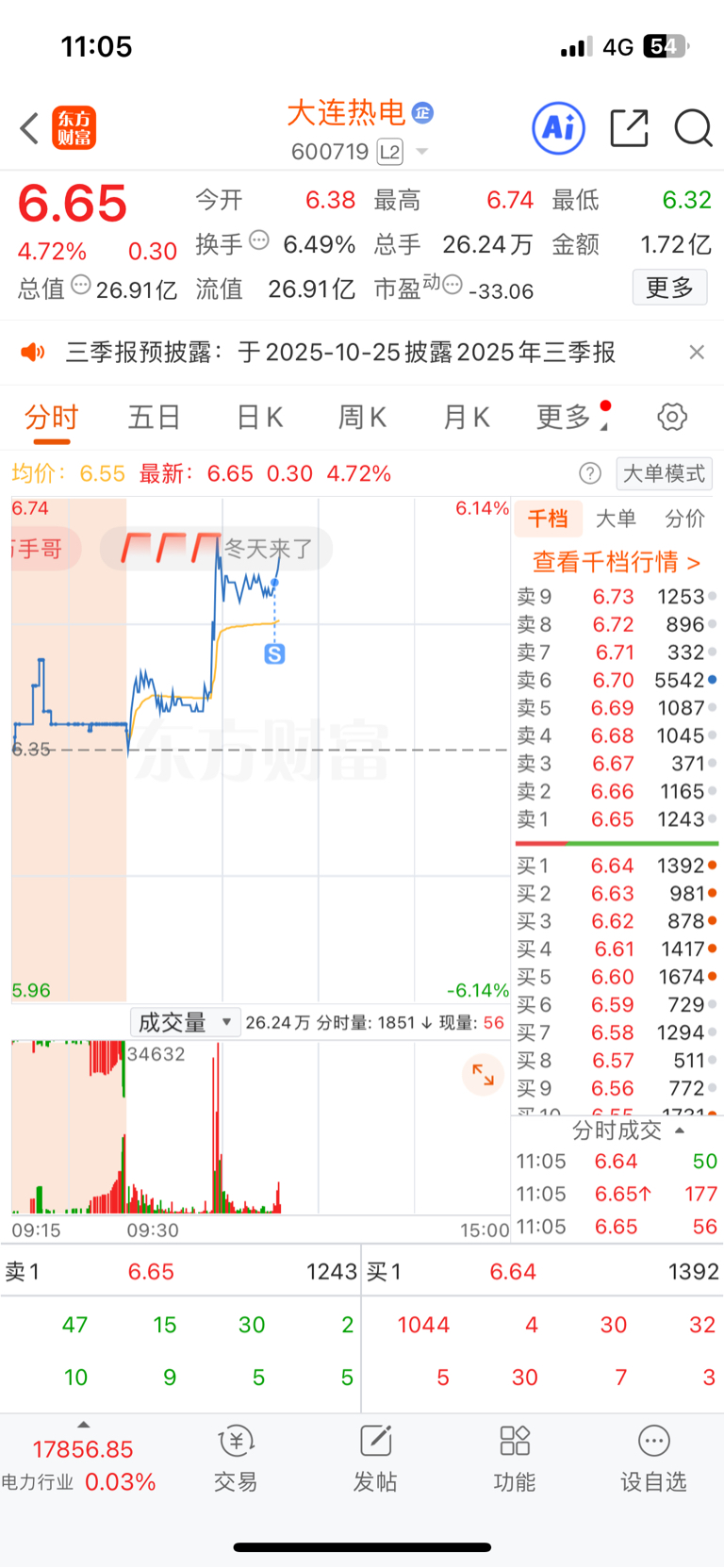 $大连热电(SH600719)$ 感谢我吧,我不出,主力不会拉的