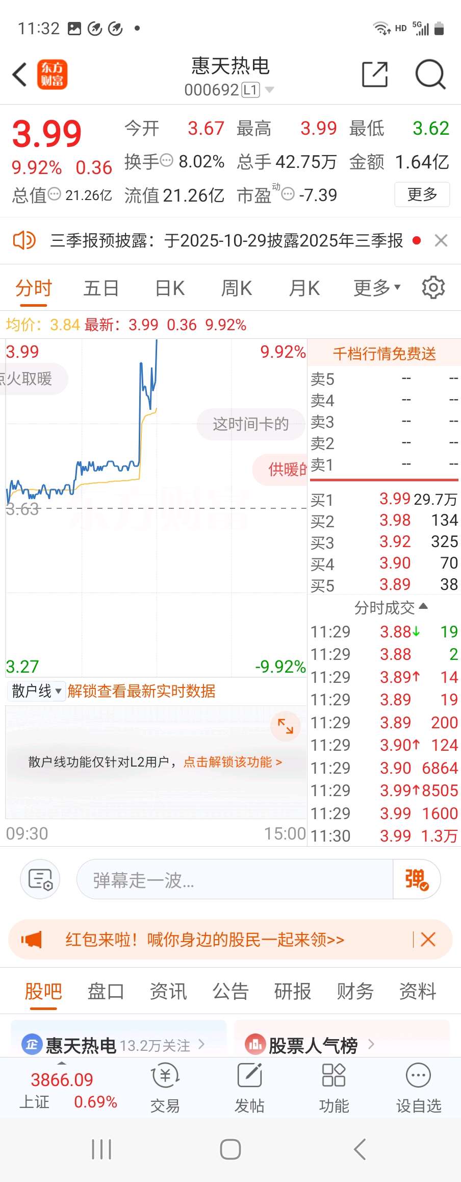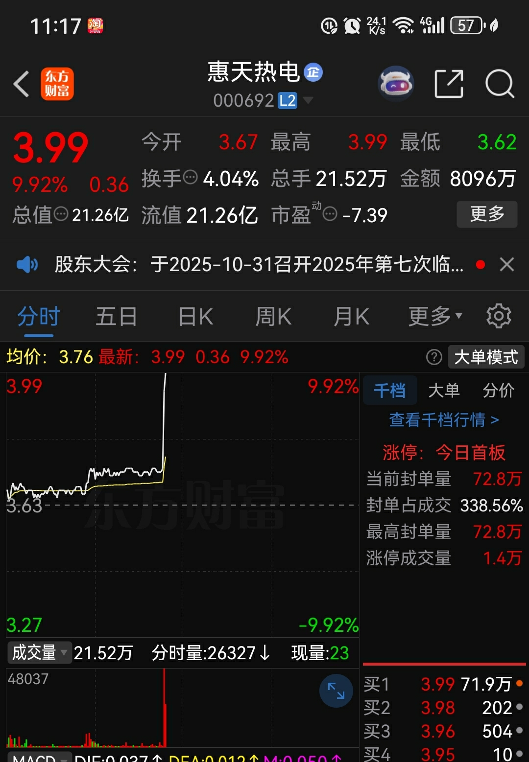 3.99 元涨幅9.92%,是11点30分才出来的,你这个11点17分出来了,难道是时间穿越了