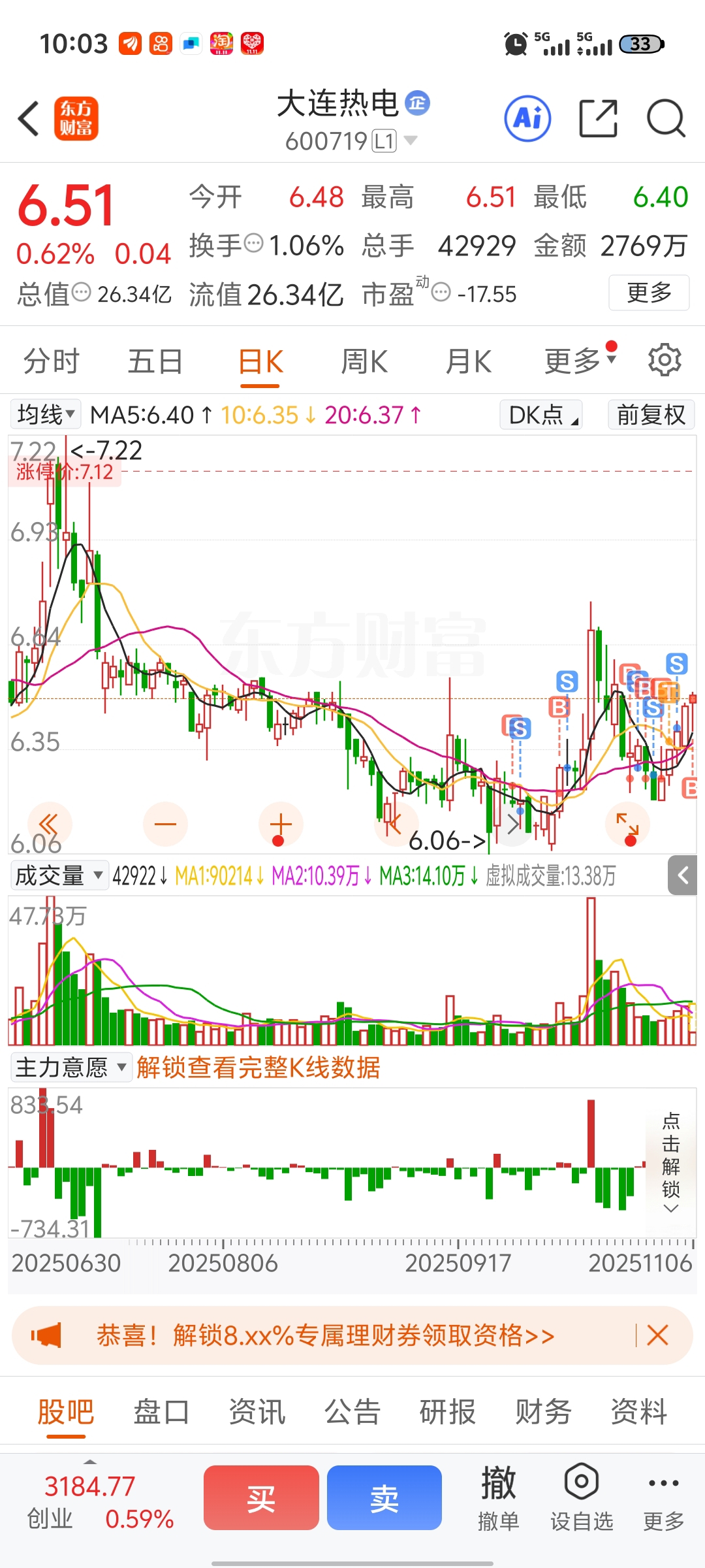$大连热电(SH600719)$ 啥时候能改掉乱动的毛病 离回本就不远了