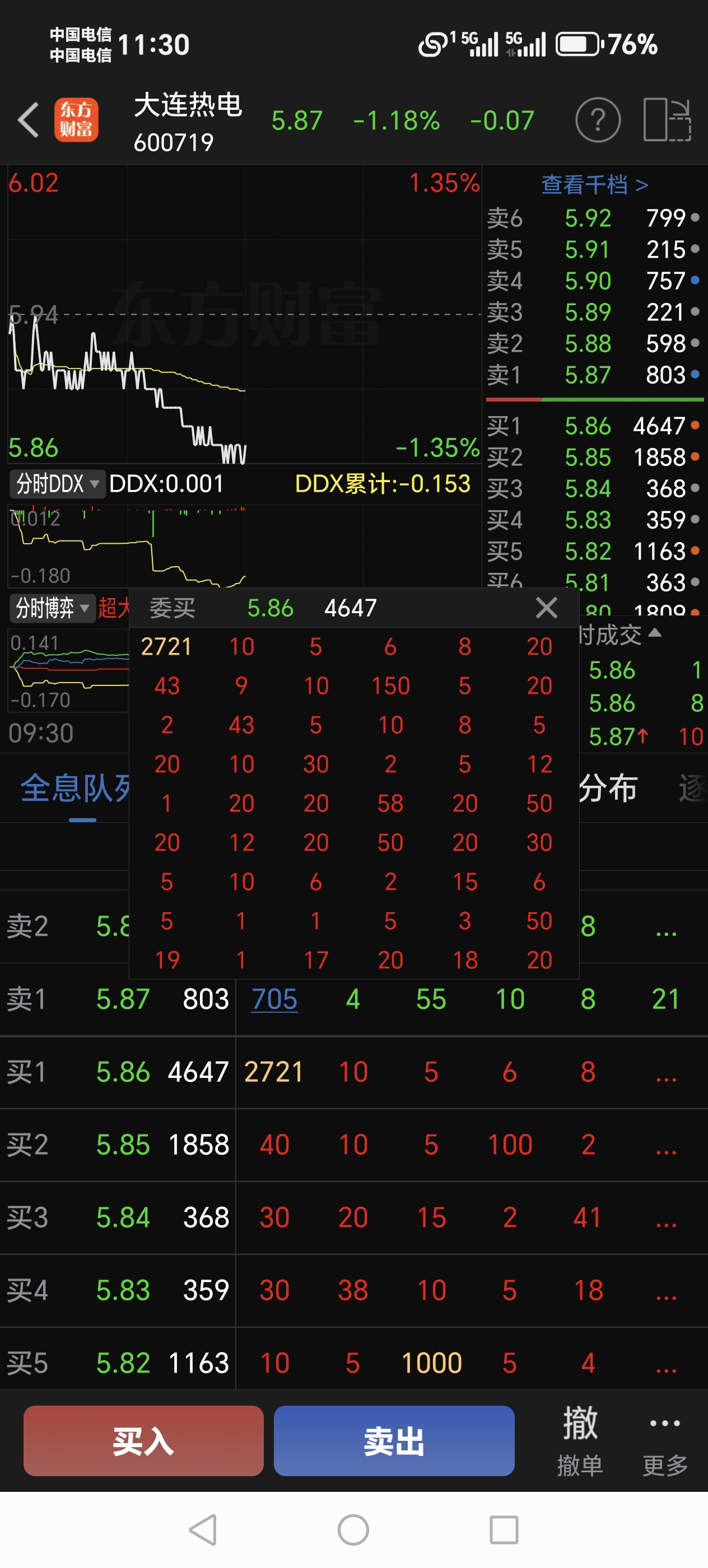 $大连热电(SH600719)$ 3000手的脱单居然没撤