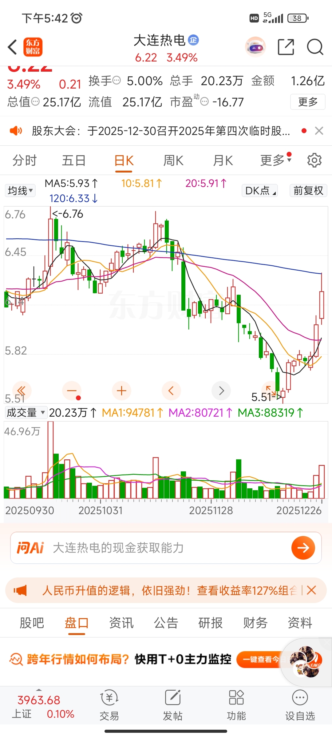 $大连热电(SH600719)$ 那么长的上影线证明6.33元的半年线抛压太大了冲不上去,下周一继续砸盘,把今天追涨的撒韭菜都砸晕,穷庄的套路没人比我更懂,下周一必定给机会给那些存在幻想的韭菜买套,想要多少便宜筹码都有,立此贴为证