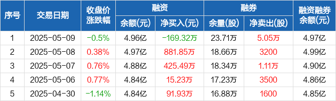 中交设计:融资净偿还169.32万元,融资余额4.96亿元(05-09)