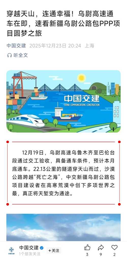 利好中交设计,G0711线乌鲁木齐至尉犁高速公路项目月底即将通车G0711乌鲁木