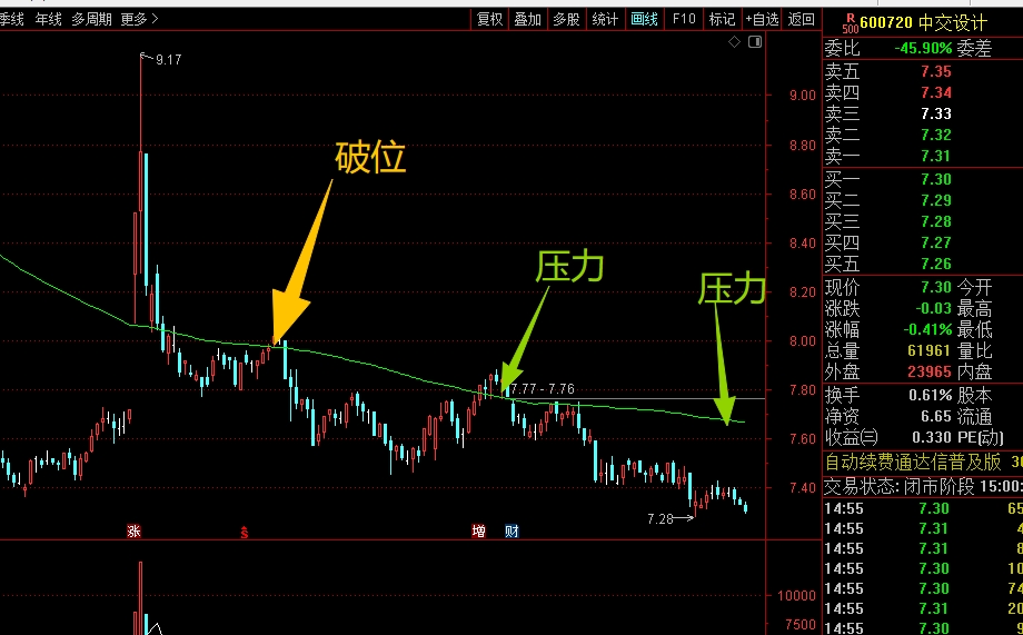 $中交设计(SH600720)$ 中期趋势走得弱了,主要是前期高位回落下来,跌破了大均线后没有能马上站稳,形成了破位风险,当时就需要大幅减仓应对,不然跌到现在就很被动了,目前来看没有止跌的趋势,暂时不考虑参与,等后期走稳了再说,不着急。#炒股日记# #收盘点评#