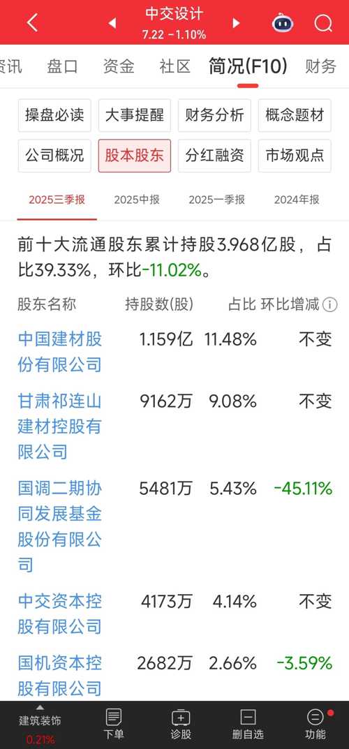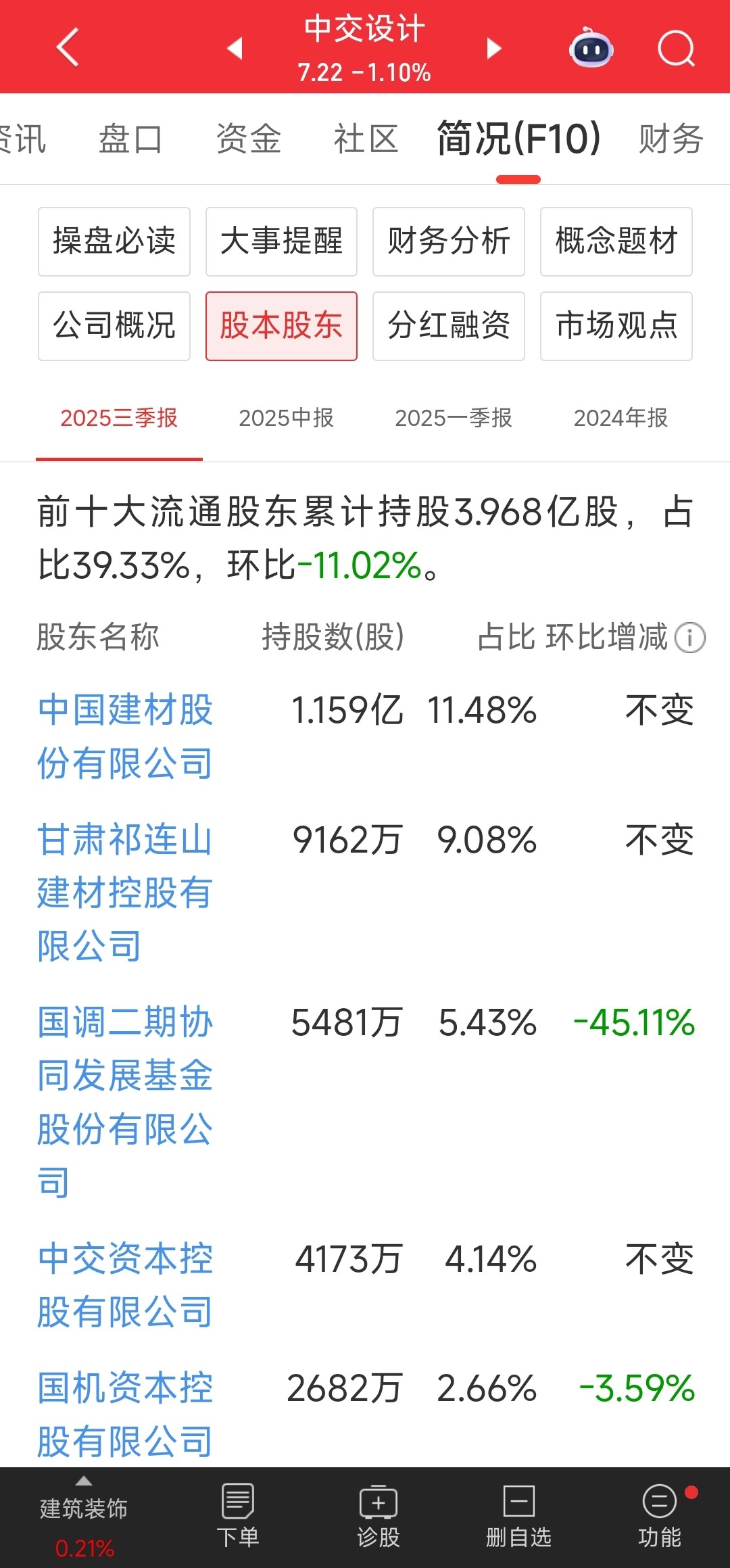 国调彻底出局,股价才有希望反转。中交设计,三季报显示,60%的流通股不属于前十大