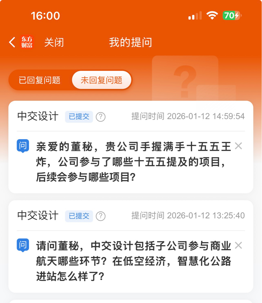 $中交设计(SH600720)$ 我的问题咋不回答?