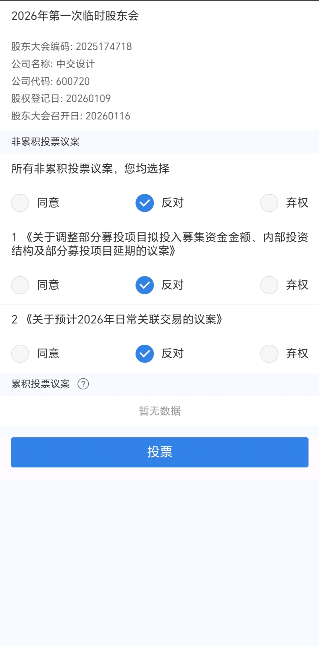 $中交设计(SH600720)$ 反对延期,必须准时进行